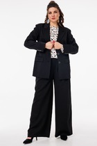 Брюки палаццо со складками по переду. В боковых швах карманы, пояс без резинки. Застежка на тесьму-молнию. По боковым швам настрочены лампасы.