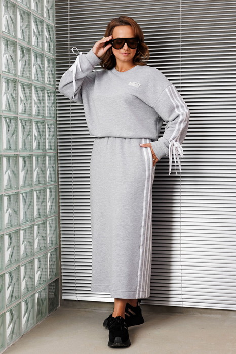 Костюм свободного силуэта состоящий из свитшота и юбки.