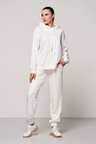 Костюм ОВЕРСАЙСЗ, из трехниточного футера с изнанкой петля. Худи Oversize модели 3057 с капюшоном на подкладке из основной ткани, с боковыми накладными карманами, с боковыми разрезами по низу изделия, удлиненная спинка. Брюки модели 3056 средней посадки зауженные к низу с карманами в боковых швах. Обработка низа брюк резинка. Ткань футер (3-х ниточный) с внутренним слоем петля, качество Пенье, плотность 395 г.м2 . Рост 164-170