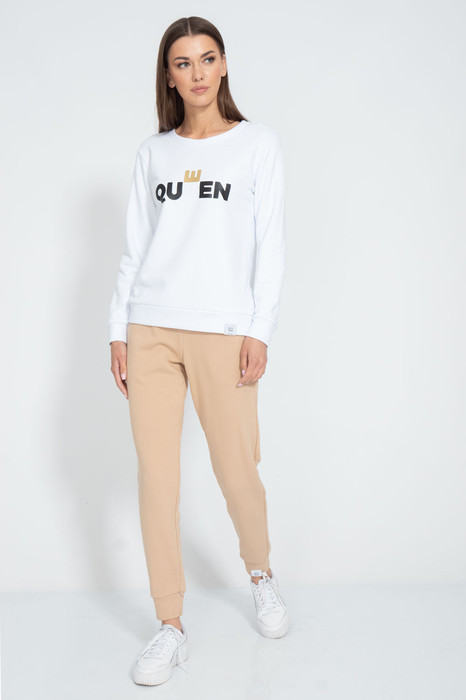 Костюм. Классический свитшот с нанесенной апликацией либо цифровой печатью. Брюки средней посадки зауженные к низу с  карманами в боковых швах. Обработка низа брюк  манжета. Ткань футер 3-х ниточный с внутренним слоем на петельной основе, качество Пенье, плотность 315 г.м2. Максимально качетвенная ткань c софт текстурой наружной и фнутренней стороны ткани.