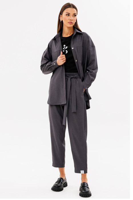 Представляем костюм состоящий из блузы и брюк.  Блуза свободного кроя, которая идеально сочетает в себе элегантность и комфорт. Брюки свободного кроя “Urban Elegance” – идеальное сочетание офисной строгости и свободного спортивного стиля. Этот костюм изготовлен из высококачественной костюмной ткани, что обеспечивает ему долговечность и элегантный внешний вид.