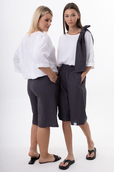 Женский костюм из льна с вискозой премиум-класса. Комплект: джемпер со съемным бантом в комплекте и шорты.