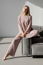 Стильный спортивный костюм, комбинированный двумя типами ткани, идеальное сочетание стиля и удобства. Бомбер свободного кроя, что придает легкости в движении, застежка на молнии, воротник стойка, рукав втачной на спущенной пройме с отделкой в цвет брюк, прорезные карманы с листочкой. Брюки из костюмной ткани с прорезными карманами, пояс на резинке, в боковых швах отделочный кант в цвет бомбера.