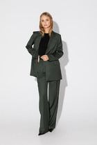 Комплект из уютного мягкого трикотажа, состоящий из свободного покроя, джемпера оверсайз и широких свободных брюк. Джемпер имеет спущенную линию плеча, свободный рукав, зауженный к низу. Ширина рукава 22-24 см, запястья 15 см. Длина от линии горловины до запястья 72-74см (в зависимости от размерного ряда). Боковые швы джемпера дополнены разрезами, высотой 15 см. Длина изделия по линии спинки 72.5-74 см (в зависимости от размерного ряда). Горловина джемпера оформлена стойкой с перегибом, высотой 8 см.