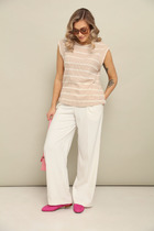 Брюки свободного кроя, по линии талии-пояс с эластичной тесьмой. Ширина низа брюк 31 см. Длина изделия по боковому шву: 104.5-106 см.(в зависимости от размерного ряда)