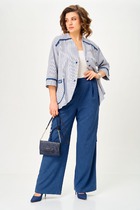 Блуза с фигурным вырезом горловины. Перед с фигурной деталью длиннее низа, складками с одной стороны, декоративной тесьмой и цветком из ткани. Спинка с потайной молнией в среднем шве и талиевыми вытачками. Рукава втачные.