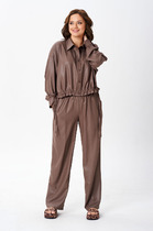 Брюки на поясе с резинкой. Передние половинки с наклонными карманами к боковым швам.