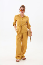 Трендовые брюки  с косыми карманами  и отрезным поясом на резинке. Застежка обработана по классической   технологии  (гульфик с молнией и пуговица на поясе).