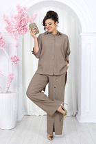 Жакет со стояче – отложным воротником и центральной застёжкой на петли и пуговицы и пришивную кнопку в верхней части. Перед со съёмным бантом в верхней части и декоративными клапанами с пуговицами в нижней части. Рукава втачные. По воротнику, краю борта, низу изделия, клапанам и низу рукавов идёт кант контрастного цвета. Жакет на подкладке.