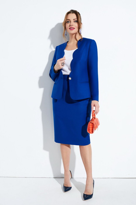 Жакет с фигурным вырезом горловины и центральной застёжкой на петлю и пуговицу. Перед с рельефами и карманами в нижней части. Спинка со средним швом и рельефами. Рукава втачные. Жакет на подкладке.