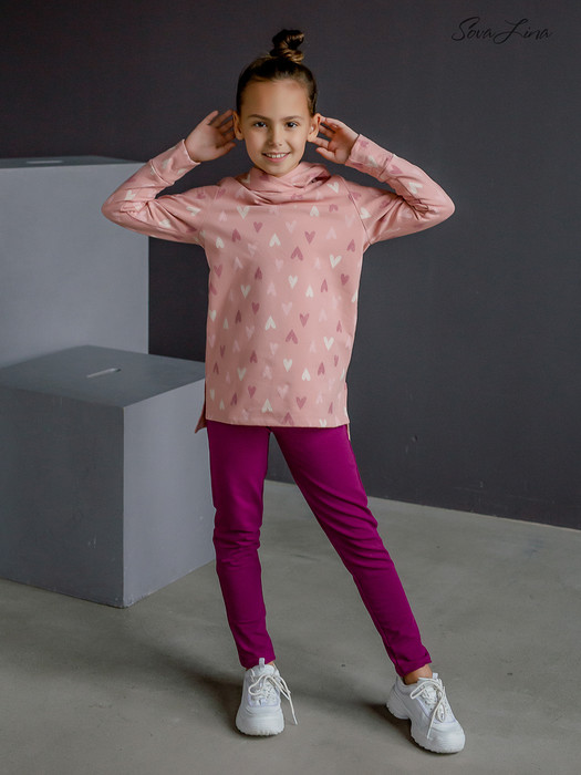 Модный костюм для девочки подойдет для активного отдыха, бега, спорта, прогулок, повседневной носки. Высокий процент содержания хлопка с небольшим добавлением нитей эластана позволяют сохранять первоначальную форму после многочисленных стирок и быть безопасным для детской кожи. Удобно носить в школу и детский сад.