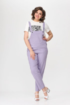 Комплект 2ка, состоящий из жилета и брюк. Жилет из трикотажного плотна без рукавов свободного силуэта прямого кроя с круглой горловиной. Брюки широкого объема, прямого силуэта. На передних половинках брюк заутюжены стрелки, переходящие в складки по линии талии. На задних половинках также заутюжены стрелки. В боковых швах расположены карманы. Застежка-гульфик. Пояс отрезной, притачной. В задней части пояса вставлена эластичная тесьма (резинка). На пояс настрочены шлевки. Выступающая часть пояса застегивается на петлю и крючок.