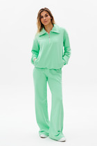 Костюм 2ка, состоящий из жакета и брюк. Жакет двубортный умеренного объёма приталенного силуэта с застёжкой на петли и пуговицы. По бокам расположены функциональные прорезные карманы с клапаном. Жакет на подкладке. Брюки умеренного объема, прямого силуэта. На передних половинках брюк заутюжены стрелки, переходящие в складки по линии талии. На задних половинках также заутюжены стрелки. По бокам расположены функциональные карманы. Застежка-гульфик. Пояс отрезной, притачной. На пояс настрочены шлевки. Пояс застегивается на петлю и крючок. Рост фотомодели 175 см. Размер у фотомодели – 44. СОВЕТ ОТ СТИЛИСТА: для прохладных дней надевайте под жакет водолазку , а из обуви можно подобрать кеды или ботинки на платформе. Для более романтичного образа советуем укомплектовать блузкой из нашей коллекции , а из обуви подобрать ботильоны на каблуке.