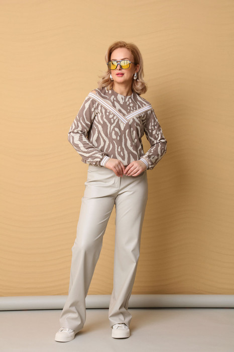 Комплект 2ка, состоящий из джемпера и брюк. Джемпер свободного объёма, оригинального кроя, с имитацией топа и открытыми плечами. Горловина круглая, по спинке застежка на петлю и пуговицу Отделка горловины джемпера и манжеты выполнены из довязов в контрастном цвете. Прямые брюки из мягкой экокожи с вискозной мягкой изнанкой, очень приятной к телу. По переду и сзади расположены карманы по принципу джинсовых брюк. Застёжка на молнию и пуговицу. Рост модели 170, размер 48. СОВЕТ ОТ СТИЛИСТА: из обуви отлично подойдут лоферы на высокой платформе и небольшая сумка , держащая форму. Для образа "выходного дня" сделайте выбор в пользу кроссовок или кед.