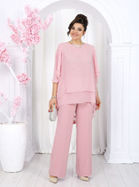 Костюм 2ка в стиле спортшик, состоящий из джемпера и брюк. Джемпер свободного объёма с декором по переду. Горловина джемпера и манжеты выполнены из довязов. Брюки свободного кроя от бедра. Талия брюк на резинке, по переду и сзади расположены карманы,дополненные декором. Комплект из мягкой не толстой ткани с эффектом "велюр". Длина джемпера 59-60 см , длина брюк 115-116 см.