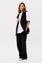 Элегантный костюм, состоящий из брюк с высокой посадкой на резинке и блузы свободного кроя. Очень женственный комплект украшают рукава с кружевом. Отлично подойдет на любое торжественное мероприятие!