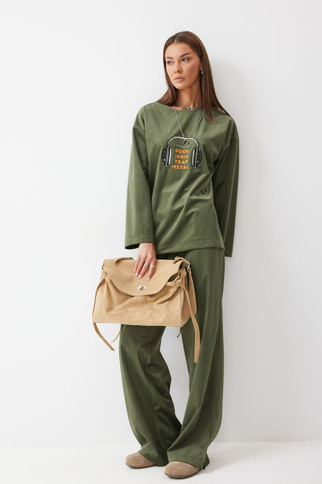 Джемпер прямого силуэта из костюмной ткани. Горловина округлая, на спинке застежка в среднем шве.  Рукав со спущенной линией плеча длинный. По  низу джемпера в боковом шве шлица.