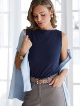 Стильный комплект из блузы и брюк. Блуза свободного оригинального кроя с центральной застежкой на молнию. Выполнена из приятного к телу поливискозного полотна. Воротник отложной. Рукав втачной, слегка спущен, дополнен притачной манжетой. Брюки прямого классического кроя, слегка заужены книзу, с притачным поясом. Выполнены из джинсовой ткани. Посадка средняя. Застежка на молнию и пришивную пуговицу. Дополнены боковыми и задними карманами. Длина блузы от плечевого шва 70см. Длина рукава 60см. Длина брюк по боковому шву 92 см.