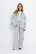 Состав: Жакет- ПЭ-32%; Хлопок-55%; Эластан-3%; Люрекс-10%; Брюки- Вискоза-37%; ПЭ-62%; Эластан-1%;