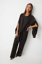 Элегантный комплект из удлиненного жакета и брюк. Выполнен из мягкой костюмной ткани.