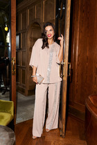 Состав: Жакет- Вискоза-32%; ПЭ-55%; Эластан-3%; Люрекс-10%; Брюки- Вискоза-37%; ПЭ-62%; Эластан-1%;