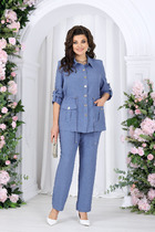 Универсальный женский брючный костюм из двух предметов станет незаменимым для Вашего гардероба в наступающем сезоне. Оба предмета данного комплекта отлично сочетаются между собой и смело могут создавать комбинации с другими вещами. Блуза оверсайз с круглой горловиной на стойке. Перед с центральной потайной застежкой планкой на петли-пуговицы. Спинка цельная со встречной складкой из-под стойки. Плечо спущено с втачным рукавом 3/4 и широкой подгибкой. Брюки длинные свободного кроя на притачном поясе с резинкой. По переду в боковых швах функциональные карманы. Комплект выполнен из приятной на ощупь вискозной ткани. Длина брюк по боковому шву 112+-1 см., по шаговому шву 83 +-1 см. Длина блузы по спинке 70 +-1 см., длина рукава от горловины 61 см. Изделие подойдет на рост 170 см