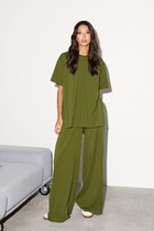 Универсальный и удобный женский брючный комплект. Данный комплект отличный вариант для повседневной носки. Изделие состоит из футболки и брюк-шароваров. Футболка свободного кроя выполнена из хлопковой ткани. Рукав укороченный, круглая горловина — кашкорсе, перед и спинка прямые. По переду изделие украшено принтом. Футболку с легкостью можно носить как навыпуск, так и заправленной. Брюки-шаровары с поясом на резинке и декоративными лентами. Имеются боковые карманы в швах. Также по низу передних и задних половинок односторонние складки, придающие пышность брюкам. С данным комплектом можно смело создавать стильные образы как вместе, так и по отдельности, а свободный силуэт не будет сковывать ваших движений и вы будете чувствовать себя комфортно при любой погоде. Длина футболки по спинке 65 см, длина рукава от плечевого шва 27 см. Длина брюк по боковому шву 96 см, по шаговому 66 см. Изделие подойдет на рост 170 см.