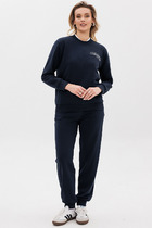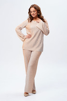 Комплект женский, двухпредметный, состоящий из туники и юбки. Блузка прямого силуэта из трикотажного полотна «шанель», с нагрудными вытачками из бокового шва. Рукав втачной одношовный, расширенный к низу. По левому рукаву декоративный элемент в виде цветка. Горловина округлой формы, обработана обтачкой с перекантом. Спинка со средним швом. Юбка из текстильной ткани, А-образного силуэта, на подкладке, с застежкой в среднем шве заднего полотнища. Верхний срез обработан обтачкой.  Длина туники по спинке 55см. Длина рукава 52см. Длина юбки по боковому шву 67см.