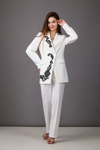 Комплект женский 2-х предметный состоящий из жакета и юбки выполненного из замшевой ткани. Жакет прямого с накладными карманами с клапаном. Спинка со средним швом. Рубашечный воротник. Спущена линия плеча. Рукав втачной одношовный по низу пата с 2-мя пуговицами. Застежка центральная на 5 пуговицы и петли. Жакет без подкладки.Юбка А-силуэта на обтачке. Застежка сзади на потайную тесьму-молнию. Юбка на подкладке.
