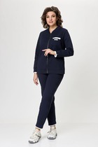Комплект женский , двух предметный состоящий из туники и брюки. Туника прямого силуэта выполнена из трикотажного полотна « в полоску» . Горловина переда обработана обтачкой. Линия плеча спущена . По переду авторская термопечать. Рукав втачной, двухошовный, по переднему шву рукава сборка. По низу изделия и рукава приточная манжета. Длина изделия по спинке- 63 см, длина рукава от горловины – 64 см. Брюки прямого силуэта на притачном поясе, с застежкой на тесьму- молнию и 1 пуговицу и петлю, с боковыми наклонными карманами на передних половинках брюк . По передним и задним половинкам брюк заутюжен кант. Для лучшего прилегания брюк в области талии в поясе по бокам вставлена резинка. Длина брюк по боковому шву без пояса- 102 см.