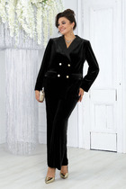 Костюм женский полуприлегающего силуэта состоит из жакета и юбки. Жакет на подкладке. По переду нагрудные вытачки, накладные фигурные карманы, застёжка на тесьму молния. Спинка с талевыми вытачками и центральным швом. По горловине и низу жакета притачная планка. Горловина круглая. Рукава двухшовные втачные на широкой манжете. Юбка, слегка зауженная к низу, без пояса, на обтачке.  По переду талевые вытачки. По спинке талевые вытачки. Застёжка потайная тесьма молния расположена в центральном шве спинки. Юбка на подкладке.