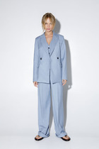 Жакет укороченный, по переду талевые вытачки, карманы с листочками и застёжка на две прорезные петли и пуговицы, и три кнопки. Спинка с центральным швом. Горловина круглая. Рукава двух шовные втачные. Жакет на полуподкладке.