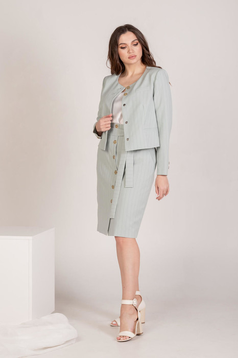 Костюм женский полуприлегающего силуэта состоит из жакета, юбки и топа.