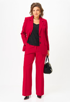 Стильный, трехпредметный костюм от бренда МОДА-ЮРС, состоящий из жакета, блузы и юбки. Жакет полуприлегающего силуэта, отрезной по линии талии, спереди со шлицами. Спинка с талиевыми вытачками и средним швом. Рукав втачной, двухшовный. Застежка центральная на петли-пуговицы. Юбка прямая, зауженная к низу, сверху на притачном поясе. Застежка на тесьму-молнию в среднем шве, который переходит в шлицу. Юбка на подкладке. Блуза прямого силуэта, в боковых швах с разрезами. По переду с нагрудными вытачками, выходящими из бокового шва. Рукав втачной, одношовный, снизу на притачной манжете. Застежка на петли-пуговицы. Главным акцентом блузы является воротник-стойка, переходящий в бант.