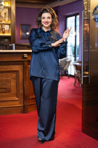 Юбка прямая, зауженная к низу, сверху на притачном поясе. Застежка на тесьму молнию в среднем шве, который переходит в шлицу. Костюм на подкладке.