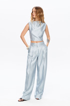 Юбка – 6-клинка, выполненная из двух видов ткани – органзы и атласа (не тянется), на подкладке. По низу клиньев – притачная планка из атласа. Верхний срез оформлен поясом с эластичной резинкой.