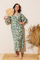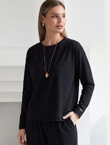 Костюм двухпредметный: состоит из джемпера и брюк. Джемпер из комбинированной ткани свободного силуэта. Рукав реглан. Воротник стойка. Брюки со стрелкой свободного кроя, верхний срез представлен широкой резинкой, с карманами.