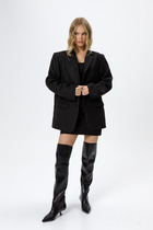 Костюм двухпредметный: состоит из жилета, брюк. Жилет двубортный прямого кроя объёма оверсайз. Застёжка фигурная на кнопки. Карманы - листочки. Брюки с притачным поясом и с карманами в боковых швах.