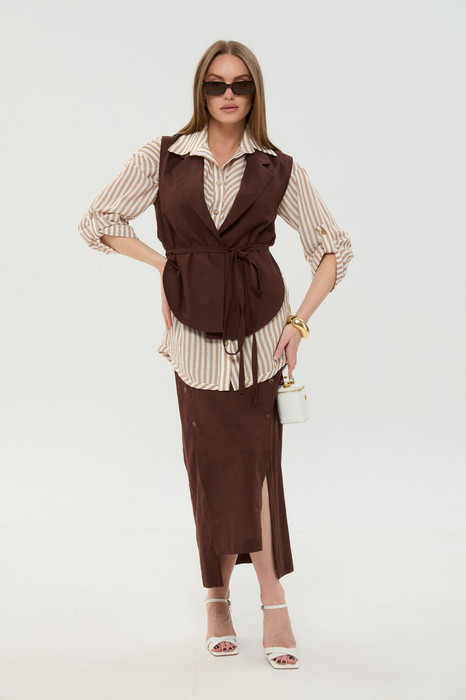 Совместные покупки Нижний Тагил Женская одежда Костюмы, комплекты — Костюм NIKVA н957-3 шоколад и песочные полосы