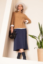 Костюм двухпредметный: состоит из рубашки и юбки. Рубашка укороченная прямого силуэта  с притачной планкой с застёжкой на петли и пуговицы. Рукав короткий одношовный со спущенной линией плеча. Воротник  рубашечный стояче-отложной. Юбка - солнце с узким поясом. В боковых швах расположены карманы. Застёжка центральная на петли и пуговицы. В комплект к юбке идет широкий пояс из основной ткани.