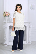 Элегантный брючный костюм двойка — идеальный выбор для деловых встреч, офисных будней, торжеств и вечерних выходов. Костюм подходит для женщин с формами: он формирует правильный силуэт, подчеркивая достоинства и создавая стройный образ. Двубортная застежка со смещением и декоративной вставкой создаёт эффект многослойности, придавая образу стильный акцент.  Универсальная модель — одинаково уместна как на работе, так и на торжественном мероприятии.