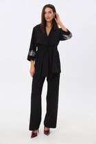 Костюм брючный 2-х предметный идеально подойдёт для офиса, деловых встреч, летних мероприятий и даже вечерних торжеств. Благодаря продуманному крою и мягкому крэш-полотну, костюм не только подчеркивает фигуру, но и создаёт правильный силуэт, визуально вытягивая и стройня силуэт.