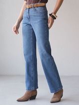 Джинсы прямые Regular fit с декоративной стиркой из эластичного денима