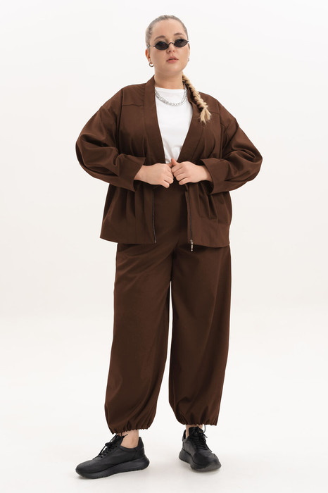 Представляем трех предметный комплект "Алладин". Лёгкий жакет-курточного типа на подкладке, майка и брюки-алладины подходит для девушек любого возраста. Костюмная ткань с хорошим стрейч-эффектом добавит комфорта при носке изделия. Жакет свободного силуэта на подкладке  с воротником-стойка. Спинка без среднего шва c  отрезной кокеткой, где заложены небольшие складки.  По переду жакета есть застроченные складки от низа, карман в листочку, застёжка на молнию и потайной магнит.  Рукав втачной, длинный, по низу есть также застроченные складки. Этот демисезонный жакет станет отличным вариантом  для весенних и осенних дней, когда хочется выглядеть привлекательно и чувствовать  себя комфортно и модно. Майка из вискозы  с круглым вырезом горловины, спущенным плечом, коротким рукавом. Удобные и комфортные брюки-алладины-это универсальная модель для повседневной носки, отдыха, прогулок. Этот комплект- незаменимая в гардеробе вещь, которая подчеркнёт всю утончённость женской натуры и позволит всегда чувствовать себя комфортно. Брюки идут с карманами в боковых швах. Пояс в области задней части брюк дополнен эластичной тесьмой, по низу брюк есть фиксаторы и эластичный шнур  для регулировки ширины. Свободный широкий силуэт ,мягкая посадка и комфортная  резинка на талии обеспечит удобство и свободу движений.  Элегантная повседневная модель для города. Замечательный  комплект  в Ваш гардероб!