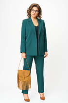 Жакет с застежкой на планку со слегка смещенными пуговицами. Рукава съемные, пристегивающиеся с помощью пуговиц. Низ рукавов обработан манжетами на две пуговицы. На спинке – средний шов и горизонтальная кокетка. На переде – горизонтальная кокетка и накладные карманы. Низ изделия закругленной формы. Горловина оформлена стояче-отложным воротником с отрезной стойкой.