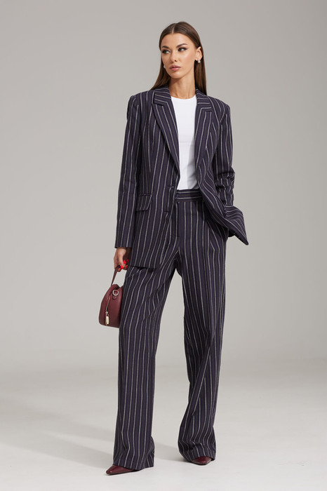 Комплект, состоит из жакета и брюк, выполнен из текстильного материала в полоску.