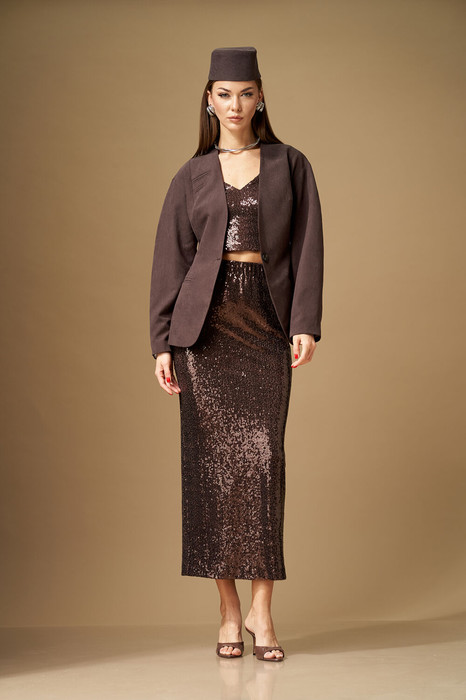 Комплект женский, состоит из жакета, юбки и топа.