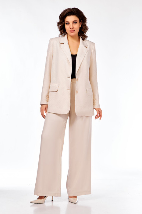 Длина жакета 75см, длина рукава 65см, длина брюк по боковому шву с учетом пояса 116 см