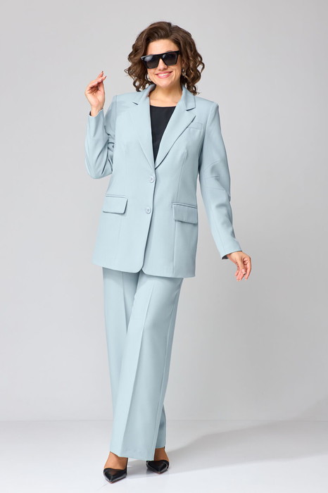 Комплект женский, состоящий из жакета  и брюк, выполнен из однотонной костюмно-плательной ткани.
