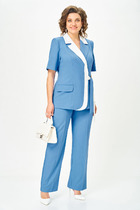 Комплект женский, состоящий из жакета и брюк, выполнен из костюмной ткани разных цветов, без подкладки.